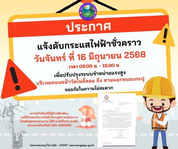 แจ้งดับกระแสไฟฟ้าชั่วคราว