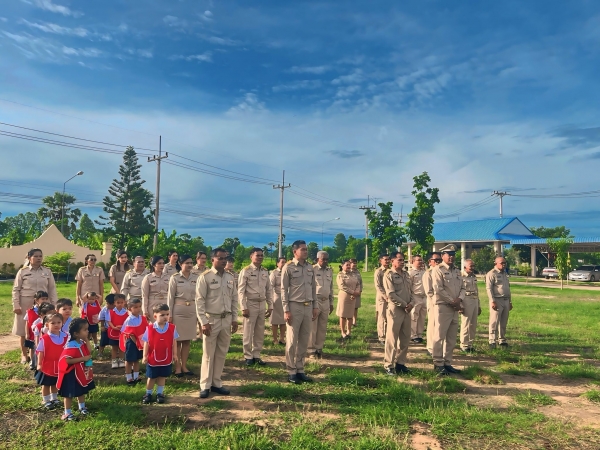 นายบุญชู พุ่มจิตร นายก อบต.หนองกะปุ พร้อมคณะผู้บริหาร สมาชิกสภาฯ ข้าราชการครู พนักงานส่วนตำบล ลูกจ้าง พนักงานจ้าง อบต.หนองกะปุ ร่วมกิจกรรมเนื่องในวันพระราชทานธงชาติไทย ๒๘ กันยายน ๒๕๖๘