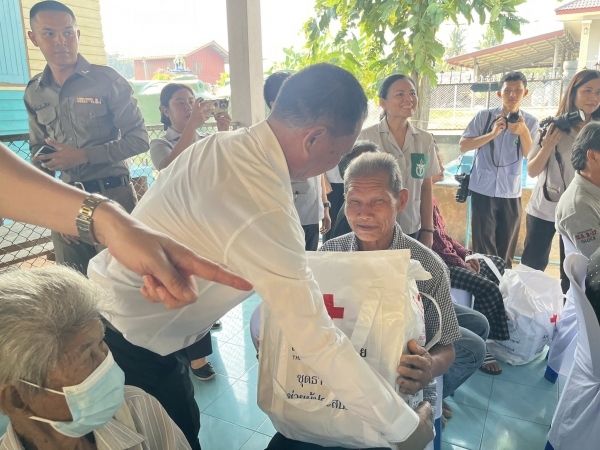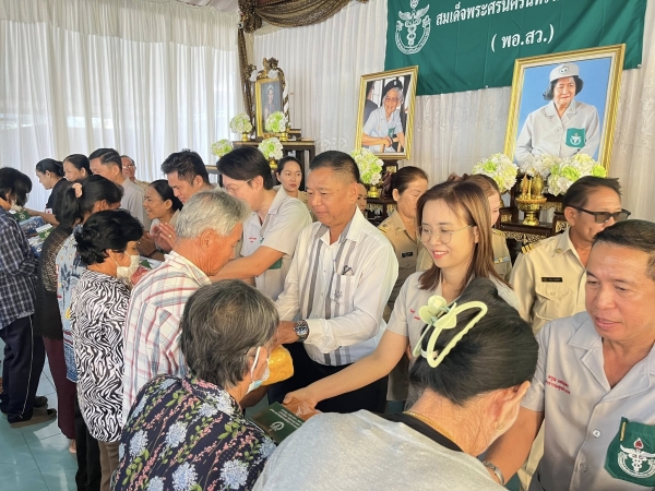 ร่วมกล่าวน้อมสำนึกในพระมหากรุณาธิคุณของสมเด็จพระศรีนครินทราบรมราชชนนี ผู้ทรงก่อตั้งมูลนิธิ พอ.สว. พร้อมกันนี้ได้มอบยาชุดพระราชทานและสิ่งของบรรเทาทุกข์จากเหล่ากาชาดจังหวัดเพชรบุรี ให้แก่ประชาชนผู้มารับบริการ เพื่อบรรเทาความเดือดร้อนในเบื้องต้น